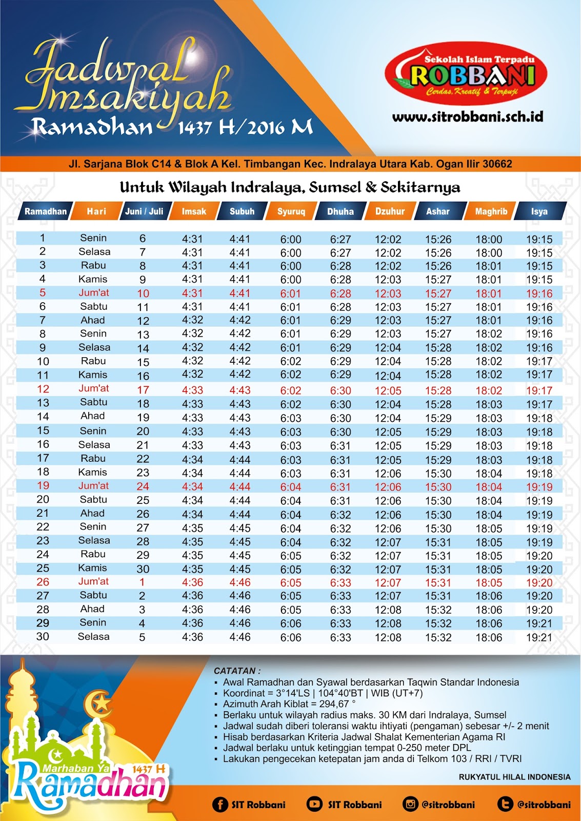 DOWNLOAD Jadwal Imsakiyah Ramadhan 1437 H SIT ROBBANI