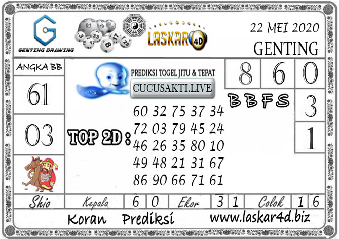 Prediksi GENTING DRAWING LASKAR4D 22 MEI 2020